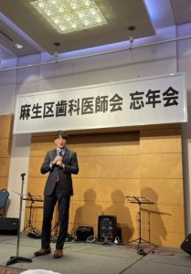 11月29日(土)夜、新百合ヶ丘で開催された「麻生区歯科医師会 忘年会」に出席。ご紹介の時間も頂戴し、先日県から発表された全国初の「かながわオーラルフレイル健康相談」についてご紹介させていただきました。ご盛会誠におめでとうございます。