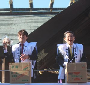 高石神社「節分祭」に出席!石川ひろのり2026-02-04T17:18:04+00:00 2月3日(月)午後、高石神社で開催された「節分祭(豆まき)」にて、豆まきのお役を頂戴しました。境内には、学校が終わった小学生や保育園の園児、地域の皆さんが集まり、賑やかな雰囲気の中で豆まきが行われました。皆さまと「福は内!」と掛け声をかけ合いながら、豆をまかせていただき会場は終始笑顔に包まれていました。ついつい年齢の数以上に豆を食べてしまいましたが、しっかりと厄除けができ今年一年も頑張れそうです!ご尽力いただいた皆さま本当にお疲れさまでした。