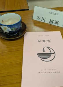 県立麻生支援学校 高等部卒業式に出席。石川ひろのり2026-03-13T14:09:31+00:00 3月13日(金)午前、神奈川県立麻生支援学校高等部の卒業式に出席させていただきました。今年は44名の卒業生。式の中では、修学旅行など3年間の学校生活の様子が映像で紹介され、保護者の方が涙を拭われている姿も見られる、とても心温まる卒業式でした。皆さん、ご卒業おめでとうございます!