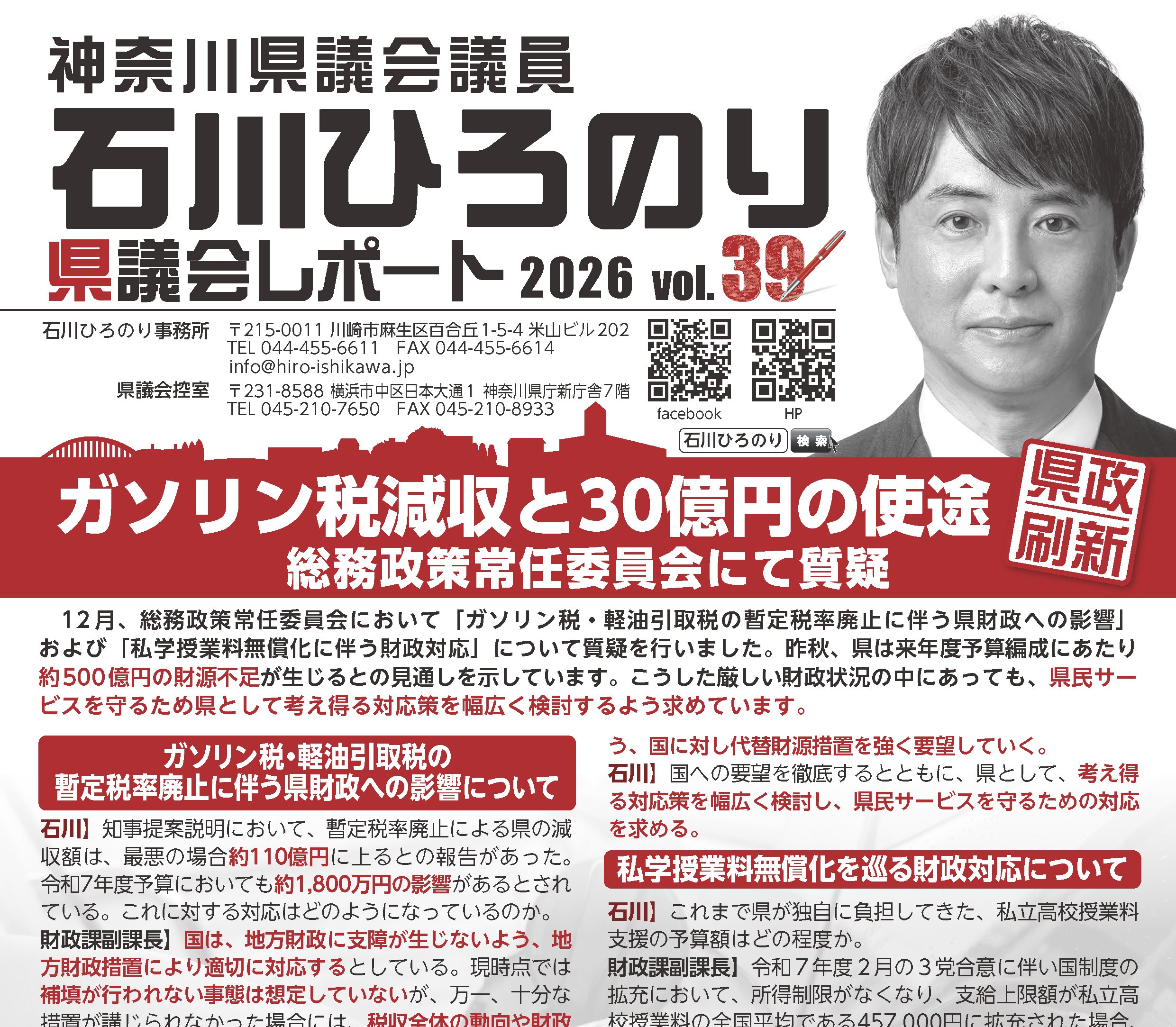 ・vol.39 ガソリン税減収と30億円の使途 総務政策常任委員会にて質疑