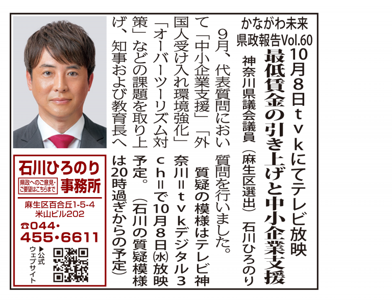 ・2025.10.03 Vol.60 10月8日tvkにて放映 最低賃金の引き上げと中小企業支援